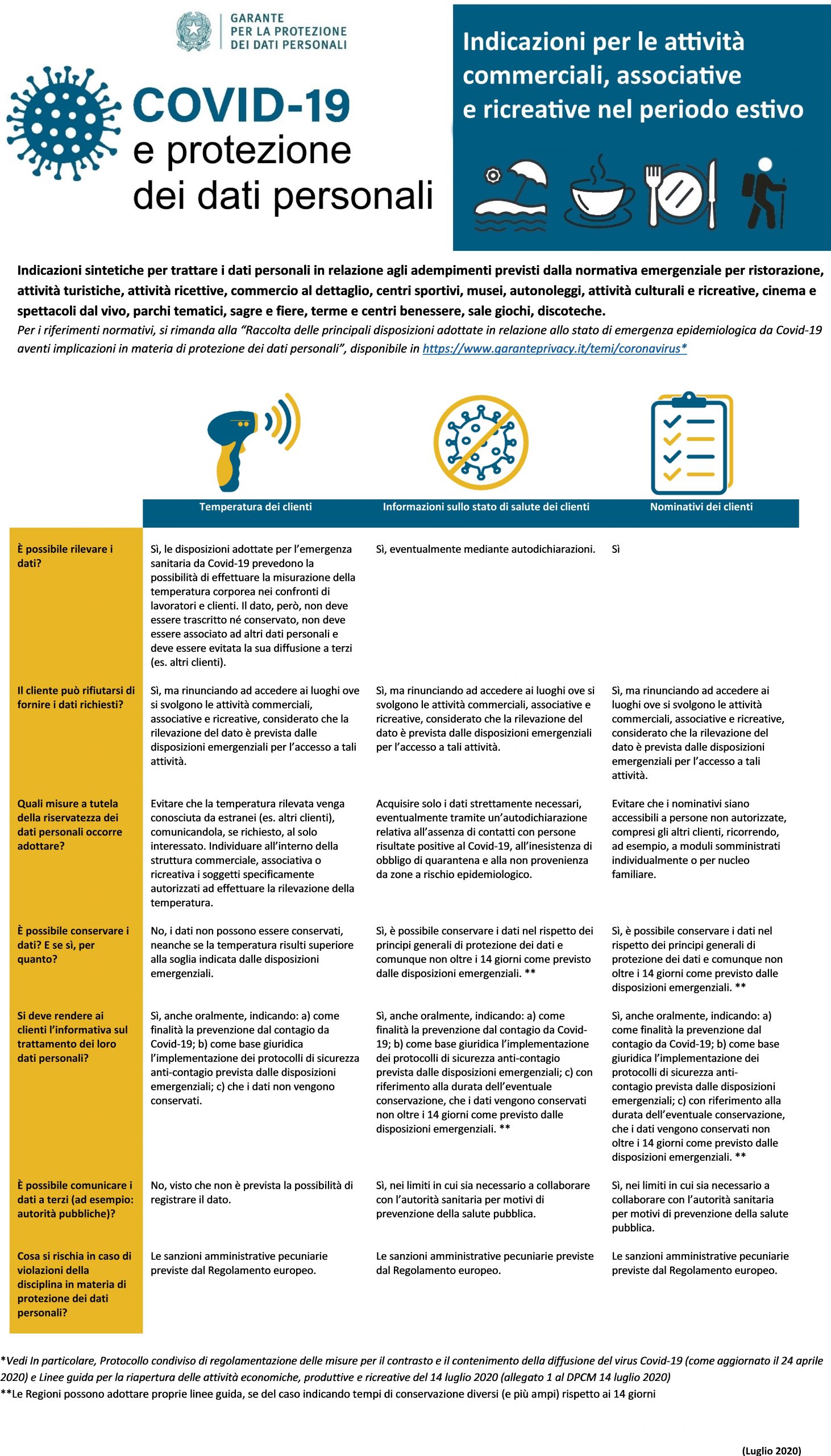 Covid-19 e protezione dei dati – Le indicazioni del Garante per le attività commerciali, associative e ricreative