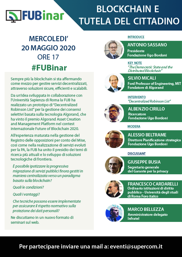 La Fondazione Ugo Bordoni è lieta di invitarla al #FUBinar