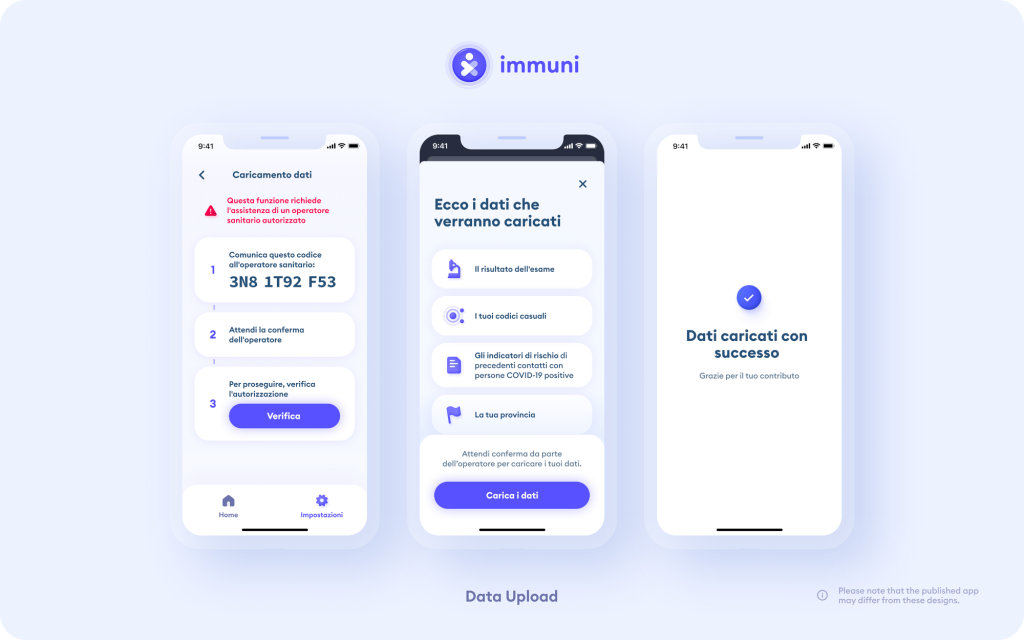 Ivan Visconti. Ho proposto di proteggere la privacy della scelta di fare l’upload dei propri dati in modo simile a quando si vota scheda bianca alle elezioni. È importante che fino all’ultimo momento il cittadino sia libero di decidere e che la sua decisione resti privata (il che poi lo rende libero). Ho quindi proposto di abilitare un secondo pulsante in aggiunta a quello dell’upload dei propri dati per offrire la possibilità di completare la fase di upload con dati fittizi, generati al momento dall’app e quindi indipendenti da quelli utilizzati nelle due settimane precedenti. Purtroppo ad oggi l’issue non ha ricevuto alcuna risposta dal team di sviluppo di IMMUNI.