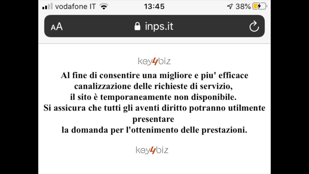 L’INPS è stato costretto a mettere “in manutenzione” il sito. Ecco l’avviso ufficiale, nel quale si comunica che il “il sito è temporaneamente non disponibile”.