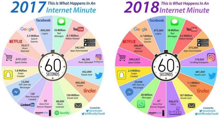 Tutto quello che accade sul web in 1 minuto: 2017 e 2018 a confronto